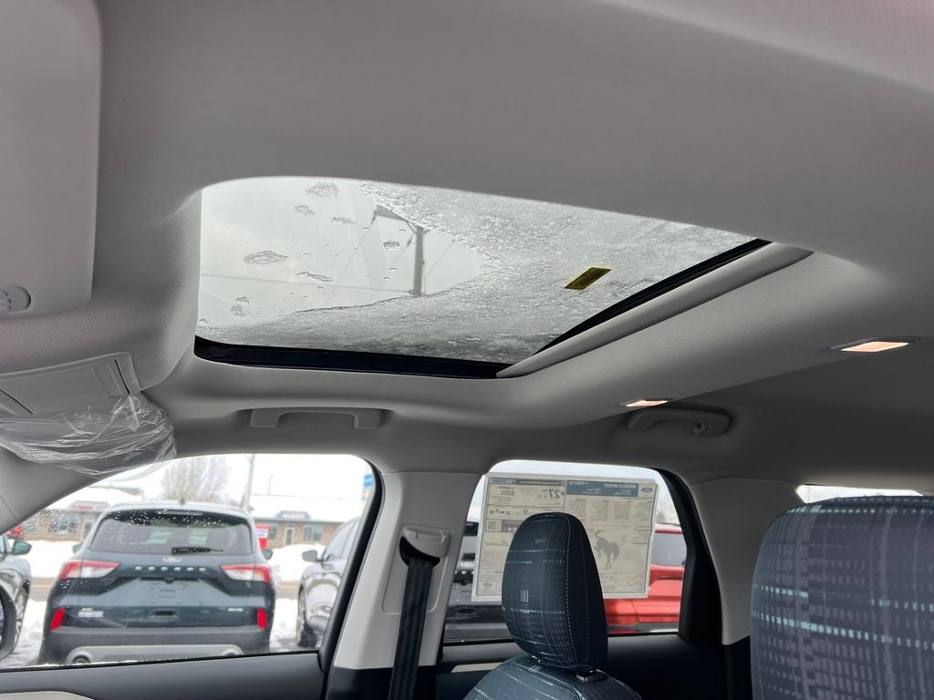 Convenience Package: Premium Wrapped Steering Wheel; Heated 8-Way Power Driver's Seat; Front Driver/passenger Seat Back Map Pockets; Universal Garage Door Opener (UGDO); LED Fog Lamps. Equipment Group 250A: 17" Oxford White-Painted Aluminum Wheels; Plaid Cloth Front Bucket Seats; 8-Speed Automatic Transmission; 225/65R17 All Terrain Tires; AM/FM Stereo; 1.5L EcoBoost Engine. Power Moonroof. Cargo Mat. **Equipment listed is based on original vehicle build and subject to change. Please confirm the accuracy of the included equipment by calling the dealer prior to purchase.**